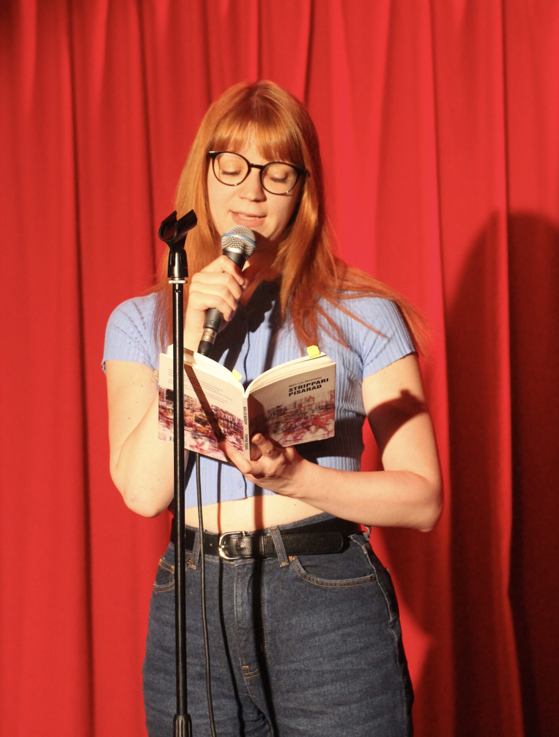 Mul on väga halb mälu ja oma loomingu peast esitamine on alati väljakutse, mis tekitab lisastressi, eriti võistlusolukorras. Imetlen luuletajaid, kes suudavad hiiglapikki tekste peast lugeda – see lisab siirust ja publikuga saavutatakse parem kontakt. Kuna seekord oli tegu finaaliga, pidin oma etteastele kõikvõimalikul moel kaasa aitama. Tekstide päheõppimine näis õudne, kuid paraku elementaarne.