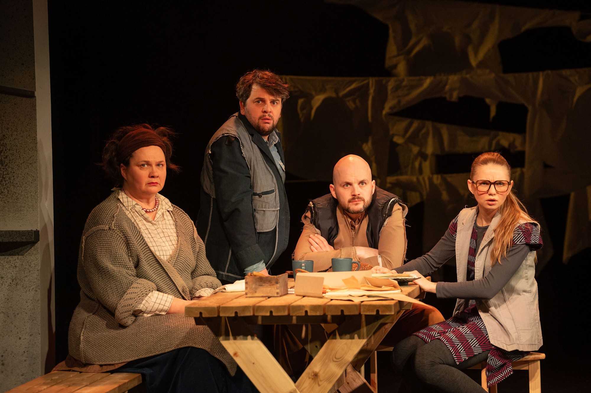 Teatav enesekorduse või kindla peale mineku moment torkas näitlejatööde puhul silma. Nii on vanad semud ja kunagised klassivennad Urmet (Tanel Ting) ja Tõnu (Jürgen Gansen) tibake ehk sama tõugu kui vennaksed hiljuti mängukavas olnud Martin McDonagh’ näidendis „Üksildane lääs“ (lavastaja Üllar Saaremäe, 2024). Teatrivaatleja déjà-vu’d võimendas veelgi Luisa Lõhmus krapsaka ajakirjanikupiiga Katre osas, kelle pärast poisid taas peaaegu et kiskuma lähevad!