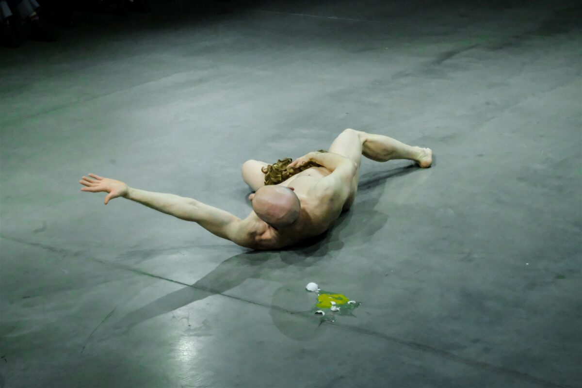 Kangro on šarmantne etendaja ka siis, kui ta jagab oma keha masinaga (kõlab jah vanamoodsalt see „šarmantne“, ehk isegi irooniliselt, aga noh, just see sõna mul pähe tuli, ei tea, kust, ei tea, kes valis). See masinkeha või siis keha oma digitaalse kaksikuga on samal ajal kõike näitav ja enamikku varjav. Alasti kahvatumapoolse jumega ihu ja tumedatooniline plastist, metallist ja plasmast kolakas moodustavad „Meediumis“ vastuolulise paari: hele on kuumav ja tume on külm, kuid ühtmoodi haprad on mõlemad kehapooled, ihu oma alastuses ning ekraan ebakindlalt ratastel püsivana. Piisaks ju vaid ühest väikesest tõukest ja see ekraan lajataks, plärtsti, vastu maad end oimetuks, pilt eest ja parandamine kallim kui uue ostmine. Inimese keha nii kergesti ei purune, kuigi aeg ei halasta tallegi, nagu ei jäeta teda ka kergekäeliselt maha (see saab ikka olema totaalne humanismikriis, kui kunagi peaks saama võimalikuks oma keha uue vastu vahetada). Üks on neil kehapooltel siiski ühine: isegi kui masina või keha füüsiline vorm hävineb, jääb inimene ikka alles – (mälu)piltides.