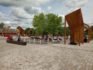 Linnaehitusprotsess võtab aega: kui kõik valmis saab, on Põlva keskväljak (Stuudio 2 Arhitektid ja Metusala Arhitektid) kolmest küljest majadega ümbritsetud ning neljas külg on avatud jõe ja pargi suunas.