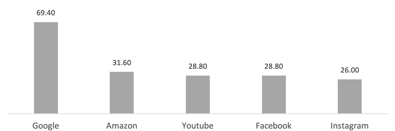Joonisel 1 tuuakse välja suurte tehnoloogiaplatvormide 2021. aasta reklaamitulu. Mastaabi illustreerimiseks: Google’i aastane reklaamitulu on üle 69 miljardi dollari ehk üle nelja korra suurem kui prognoositav 2023. aasta Eesti riigieelarve tulude maht – 16 miljardit eurot8.