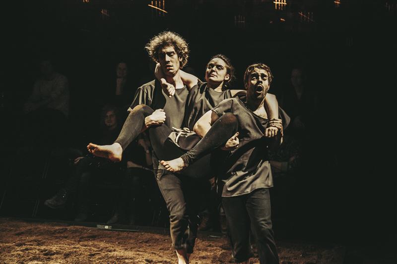 Lavastuses „Peks mõisatallis“ on näitlejamäng (Kristjan Lüüs, Jaanika Tammaru ja Kaarel Targo) teemaga kooskõlaliselt füüsiline.