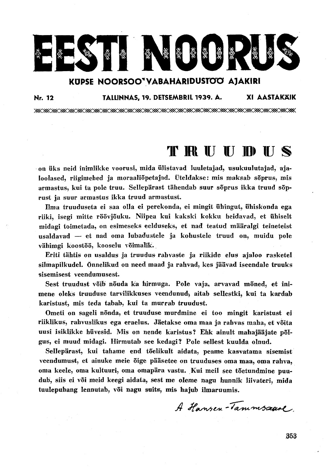 Lugegem ka kodus, rongis ja mujal. „Truudus“ on ilmunud ajakirjas Eesti Noorus (1939, nr 12). Samuti leiab selle taastrüki mitme väljaande kodulehelt.