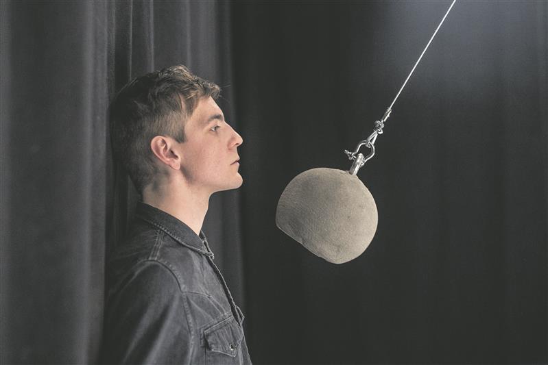 Iggy Lond Malmborg lavastuses „Physics and Phantasma“. Kui vaadata, kuidas inimpeasuurune raske pendel kellegi näo poole kihutab, on hoolimata füüsikateadmistest kokkupõrke võimatuse kohta väga raske külma kõhtu säilitada.