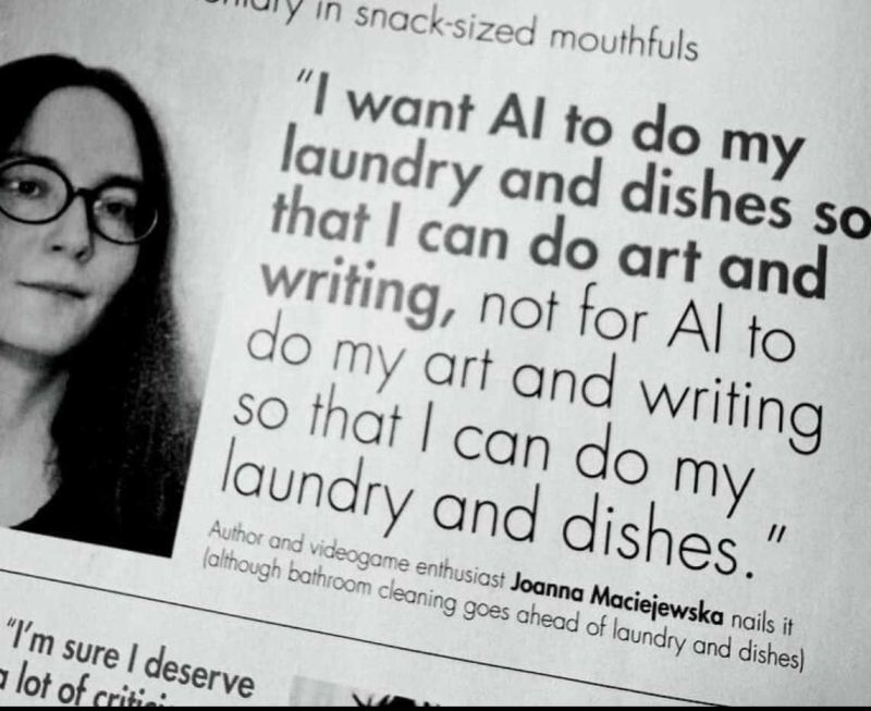 Niisuguseid võtteid muutmata jäävad ka tehisintellekti probleemid praegu lahendamatuks. Oliver Laasi soovitatud teadlikkuse kasv (millesse ka siinne töö panustab) on hädavajalik, ent see peab viima ka tegudele. Seepeale lüüakse sageli lauale ajalooline karikatuur „progressi takistanud“ masinapurustajate kohta, kelle mitmekesistest töötajate õiguste eest võitlemise meetoditest rõhutatakse barbaarseimat. Ent masinapurustajad olid ametiühinguliikumise eelkäijad, kel XIX-XX sajandi vahetusel õnnestus monopoolseid suurettevõtteid survestades saavutada ühiskondlik kokkulepe ettevõtte sotsiaalsest vastutusest. Möödunud sajandi lõpus asendati see mõtteviis neoliberaalse Friedmani doktriiniga, mille järgi on ettevõtte suurim sotsiaalne vastutus oma aktsionäride varade suurendamine. Töötajad ja teenuste kasutajad on selles – taasiseseisvunud Eestiski kiiresti invasiivseks monokultuuriks kultiveeritud majandusmudelis, mille vilju nüüd aktiivselt mekime, vaid optimeeritavad ressursid. Seepärast pole ime, et masinapurustajate mõtteviis on oma intelligentsemates vormides taas aktuaalne22 ning püütakse leiutada viise, kuidas masina ja inimeste vahelist tasakaalu taas viimaste poole kallutada.
