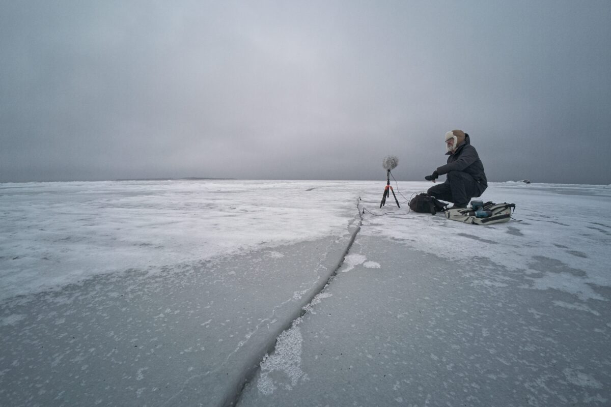 „Peamiselt heli- ja audiovisuaalkunstnikuna tuntud John Grzinich on jääd kui fenomeni oma loomingus käsitlenud mitmel viimasel aastal. Näiteks on ta salvestanud jääsiseste pingete helisid Peipsi järvel ning filminud inimeste eluviise ja kohandumisi jäätunud Põhjalahe ümbruskonnas. Erinevalt dramaatilistest kliimapiltidest, mis kujutavad näiteks sulavaid liustikke või üleujutusi, keskenduvad Grzinichi teosed sageli tähelepanuta jäävatele argistele paikadele, mida me tavaliselt kliimakriisiga ei seosta, kuid mis siiski samuti muutuvad. Grzinichi teoste läbivaks jooneks on uurimus objektiivsuse teemal: kuidas me näeme „sama kohta“ jälgides selle muutumist ajas – minut minuti, päev päeva järel,“ selgitab kuraator.