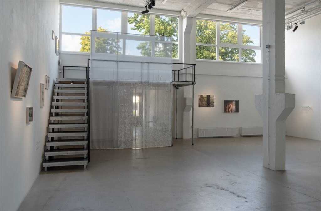 Üldse tundub, et jäljed ja lüngad on sellel näitusel olulised. Need vastandid toob kokku läbipaistvus, mis ei ole kunagi erapooletu, s.t pole kunagi tegelikult läbipaistev, vaid varjab midagi. Mitmed tööd justkui suhestuvad (läbi)-paistvusega, ent teevad seda imelikul, kallutatud viisil. Kumerad klaasist lennulauad moonutavad neist läbi liikuvat valgust, heidavad selle imeliku varjuna enda kõrvale, filtreerivad, murravad ja kujundavad seda vastavalt oma olemusele. Teose vari muutub teose osaks. Midagi sellesarnast toimub ka Riin Maide suurel trükiteosel, valgel läbipaistval kardinal, mille peale on trükitud abstraktsioone. Kogu asi ripub aga tellingutest ehitatud platvormi pealt, läheb selleks üle. Näituse sissepääsu juures ripub Riin Maide joonistus vististi sellesama platvormi abiratastest. Mingis mõttes võib sedagi võtta kui platvormi varju. Mida tähendab siin läbipaistvus ning mida püsivus? Teisele saaliseinale on Maide teinud lahti volditud ehituskilele (!) suureformaadilise joonistuse, kasutades peamiselt mehhaanilist harilikku pliiatsit. Tundub, et Maide teoste materiaalsus on justkui pöördvõrdeline Möldri fotode tinglikkusega. Teisisõnu, ka Maide tööd on õhulised ja justkui tinglikud, ent mängivad samade pingetega teistsugusel, lausa vastupidisel viisil. Siin on esil just nimelt kohalolu ning püsitus, ajalisus. Valge läbipaistev kardin kõrgub saalinurgas nagu pimeduse negatiiv. Siinkohal meenuvad nii Herakleitos kui ka kinolina, mille peale pimedas saalis valgusega kirjutatud unenägusid projitseerida saab. Kas Möldri fotod on kaadrid olematust filmist? Ja Maide tööd teevad kummitusliku kaadervärgina selle nägemise võimalikuks? Või jookseb kunstnike loomingu afiinsus mingeid teisi käike pidi?