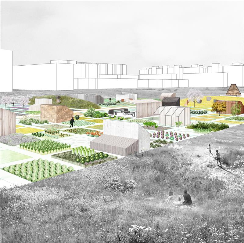 Põllumajanduslikus tsoonis, nn toidu­väljal on ära kasutatud linna loodus­alasid ja rahvas suunatakse linnakorilusele. Maastikku rikastab virtuaalne infokiht, mis annab elanikule teadmisi söödavate taimede kohta ja võimaldab tal kaardistada oma korjeraja. Ruumikasutaja ja loodus tegutsevad käsikäes – inimene annab kasvuks alge, külvates seemneid, millele järgneb looduslik valik. Nii saab toiduväljal kujundada isearenevaid taimekooslusi. Kasvatamisruumile lisanduvad ristkasutatavad varjualused õppetööks ja seemnete säilitamiseks ning mesilad, mis tagavad toidutaimedega rikastatud loodusmaastiku püsimise. Väliõpperuumis õpetatakse loodust märkama, antakse võimalus osaleda linna toiduvõrgustiku rajamises ja arendatakse seeläbi loodushoidlikku mõtteviisi.