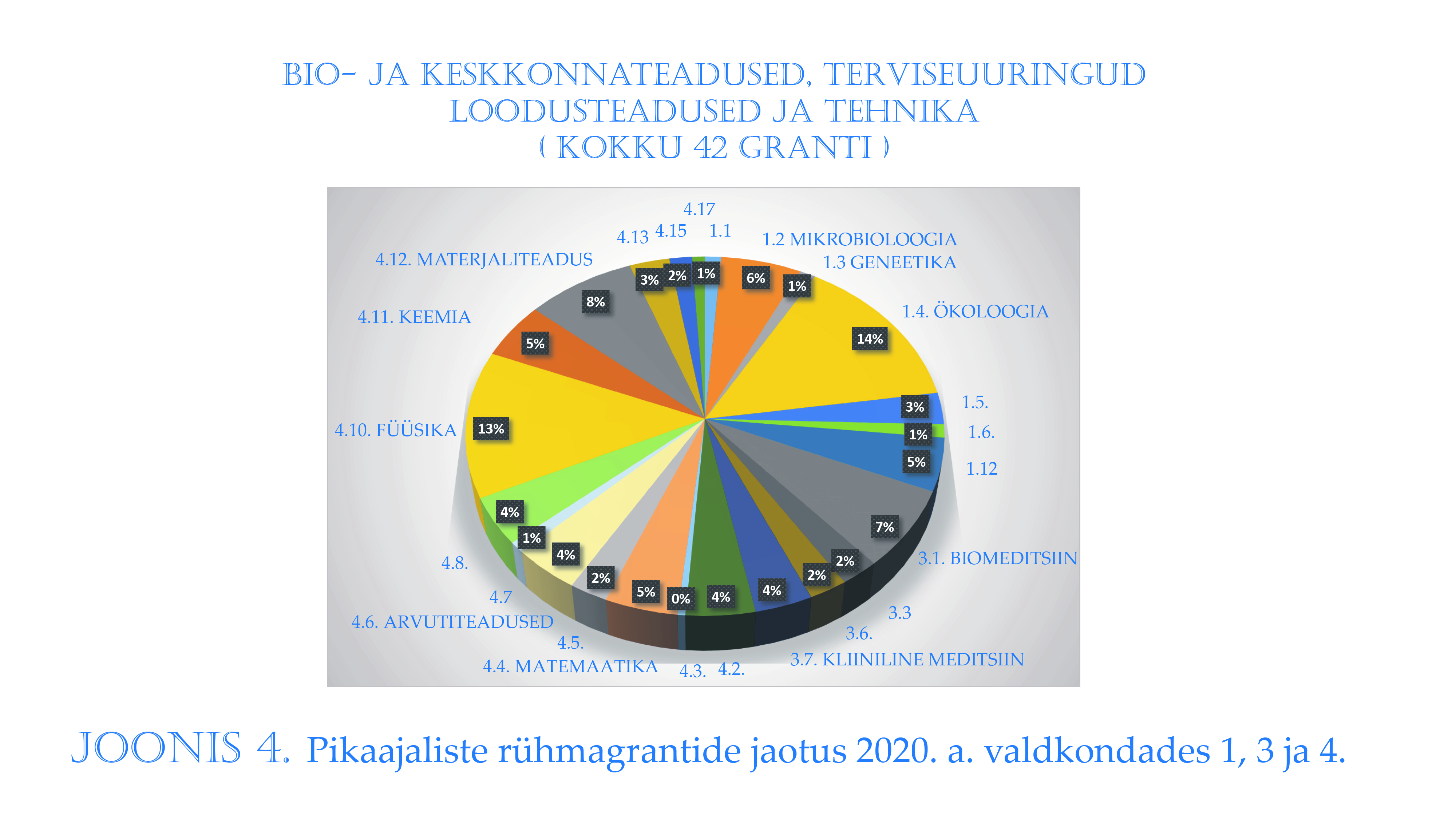 Võtame vaatluse alla eraldatud viieaastased rühmagrandid, mis on kõige mahukam ja tähtsam teadustoetus, millel püsib teadus, kraadiõpe, kogu kõrgharidus. Analüüsitud on ETISes teadusvaldkondade ja erialade klassifikaatori alusel ja vaadeldud kolme valdkonda: 1. bio- ja keskkonnateadused, 3. terviseteadused, 4. loodusteadused ja tehnika. (2. valdkonda ühiskonnateadused ja kultuur on juba piisava põhjalikkusega analüüsitud.)