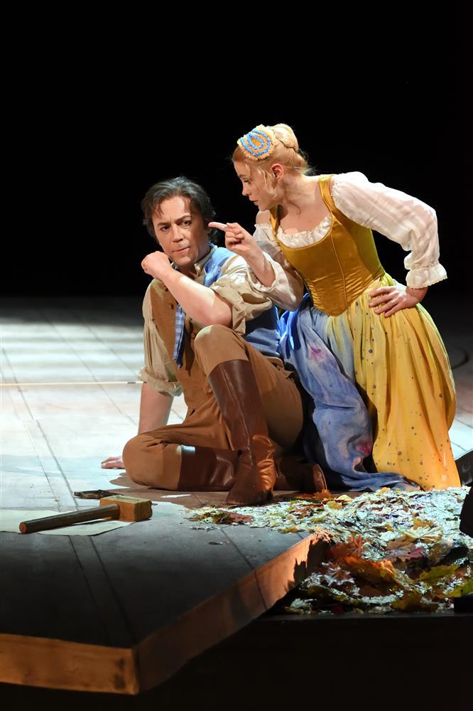 René Soom lõi esietenduse Figarona mitmeplaanilise karakteri, kelles segunevad otsustavus ning lüürilisus ja pehmus. Fotol Kristel Pärtnaga (Susanna).