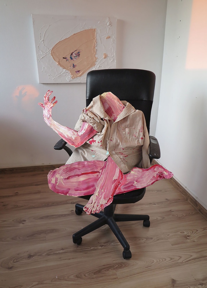 Kunstnik lisab: „Üks kuulsamaid võlusõnu on „abrakadabra”. Arvatakse, et seda aramea keelest pärit sõna võib tõlkida „ma loon, kui räägin”. Mõtlemine on maagia, iga ese mis meid ümbritseb on saanud alguse mõtlemisest. Esemed meie ümber on kas funktsionaalsed või vähetarbelised. Abstraktne värvimass, aine, algus – ABRAKADABRA.”
