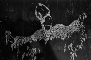** Evendi illustratsioon: Lilli-Krõõt Repnau “My name is Peaches!”, linoollõige, 2017