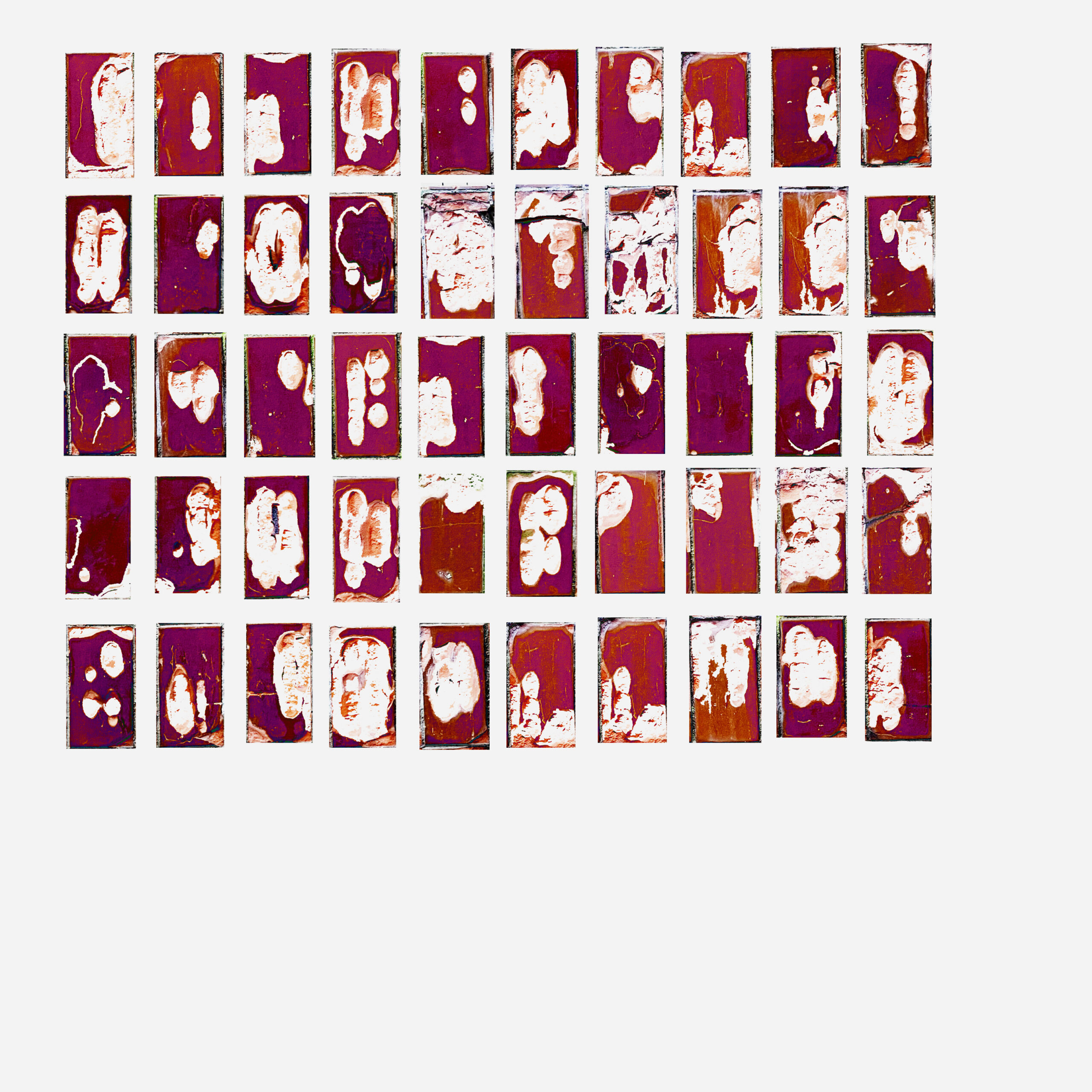 Näitusel olevad plaadid on käinud läbi liivapritsi alt, kiirendades protsesse, mis aja möödudes toimuks aeglaselt. Abrasiivne töötlemine kulutab pinda tehes nähtavaks materjalide vastupidavuse: klaas muutub iga töötlusega üha õhemaks, muutudes läbipaistvamaks ja nõrgemaks; keraamika, näiliselt tugev, on poorne ja vastuvõtlik; raud püsib kõige kauem.