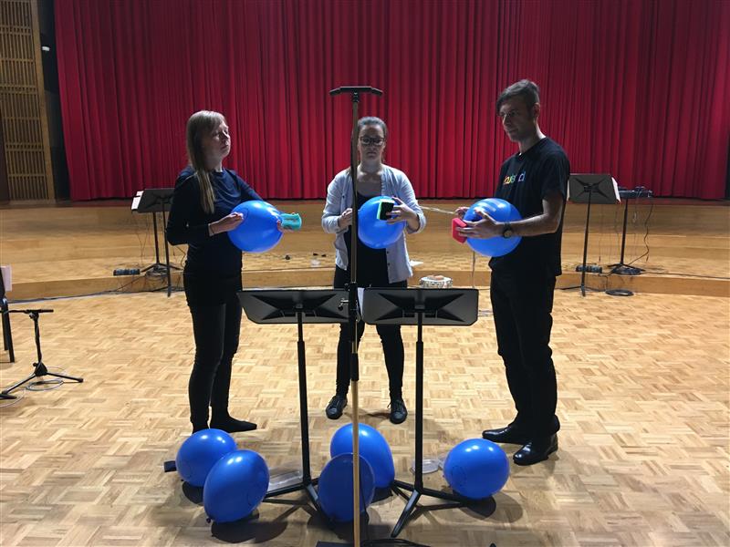 Kontserdil kõlas mitu teost, kus uurimisobjekt on materjal ja mängulisus. Näiteks Hugo Morales Murguía „Trio for Disposable Reeds“ ehk „Trio ühekordsetele kõrtele“ või ka juba 2012. aastal TUMA esituses kõlanud Michael Maierhofi „Shopping 4“ kolmele mängijale ettevalmistatud õhupallidega on mõlemad teosed, kus katsetatakse materjali akustilisi iseärasusi ning imiteeritakse ka traditsiooniliste instrumentide omadusi. Kavas oli ka teine Murguía teos „Fields“ elektroonilistele toiteallikatele ja induktoritele: see võimaldas mängijatel elektrivoolus seadmete tekitatud võnkumised kuuldavaks teha ning nendega ühel suurel pulseerival väljal manipuleerida.