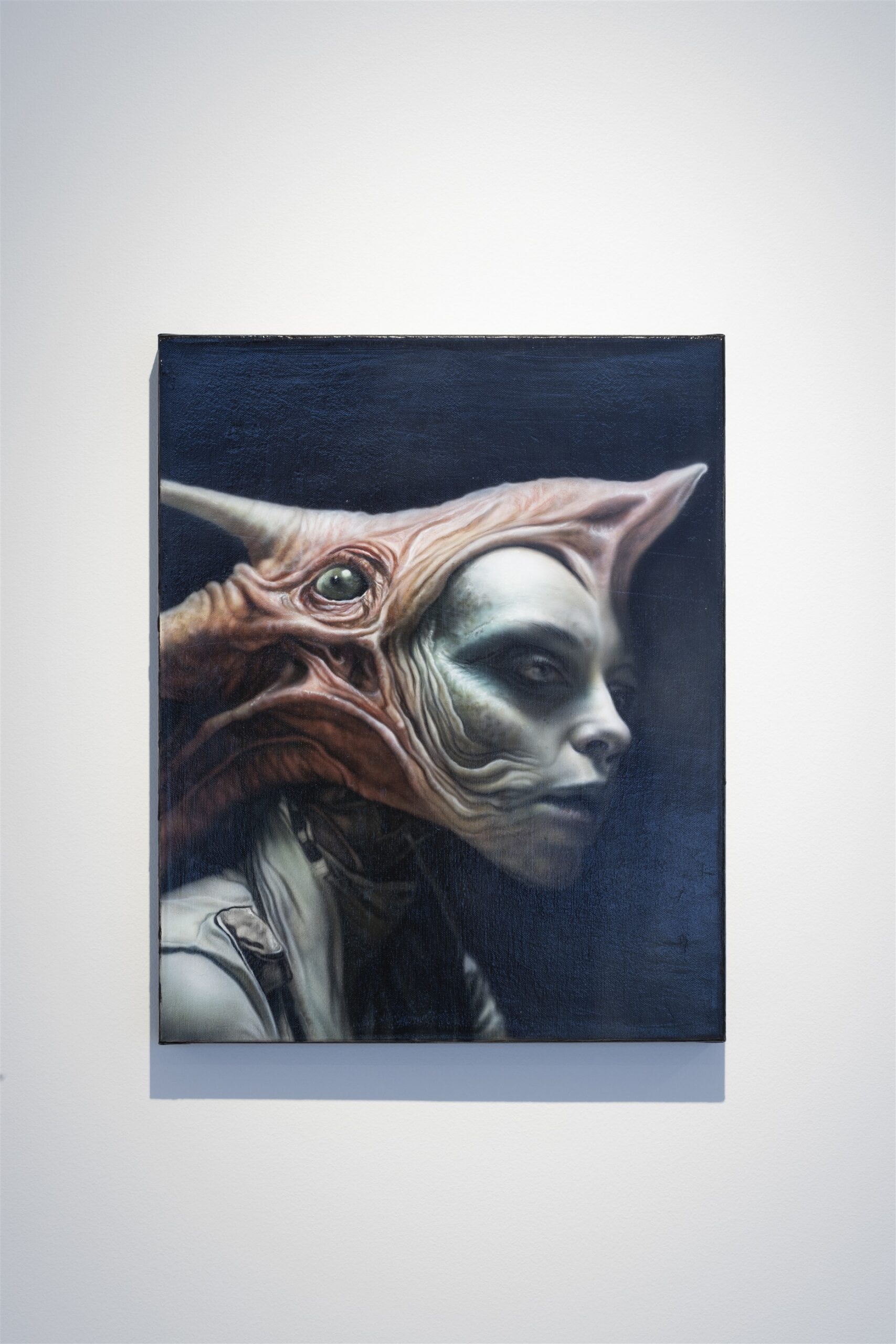 Mingem nüüd näitusel eksponeeritud viiemaalilise napi seeria juurde: „Xarion“, „Vexaris“, „Zephirum“, „Alterix“ ja viimane, väiksemate mõõtmetega ja figuraalsuse tõttu ülejäänud seeriast hälbiv „Shadorin“ kinnistavad juba pealkirjadega ulmelise retseptsioonihorisondi. Selles poleks nagu midagi uut: eks öelnud ju juba „Exobiota“ seeria kohta Juhan Raud, et „kunstniku maalide taga näib olevat ulmežanrist tuttav impulss, nimelt katse samastuda teadlikult millegagi, mis on inimesele olemuslikult võõras.* Kuid koloriidis on toimunud oluline nihe. Võrreldes varasemate kärts-krellide toonide tulevärgiga, kistud vormidega, praegusele ajale vägagi omase närveldava, tähelepanu lüheldases säritushetkes võimenduva nägemusega, on nüüdsed pildid palju rahulikumad, identiteedikandjatena stabiilsemad. Iga olend neil piltidel eksisteeriks justkui sõltumata meist ja meie teadmisest tema kohta. Hillitsetud, kergete vahakollaste, kõduroheliste ja elavhõbedaläikeliste varjunditega esmalt vaata et monokroomsena mõjuvad lahendused kuulutavad midagi hoopis arhailisemat. Korduvate laseeruvate kihtide najal piinarikka täpsusega üles ehitatud maalid näikse suhtlevat eelteadvuslikus keeles, küsivat: millest mõtled, seljaaju? Need pole sündinud elektrisädeluses nagu Maripuu varasemad tööd, vaid on justkui alati siin olnud, ligunedes meie hirmude lootevetes veel enne meid. Kui universumi arengumudel oleks vektoriaalse asemel tsükliline, pärineksid nad sealt, kus tulevik lõikub minevikuga.