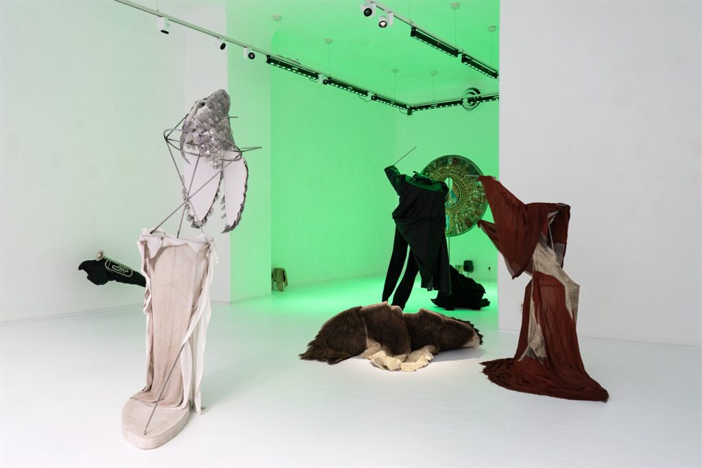 Kristlikus viimsepäeva kujutamise traditsioonis on nähtud kas teose ajale paslike rõivastega lunastatuid-neetuid või üleüldse alasti (ja tihti karvutuid!) tüüpe. Verlin pakub kolmanda võimaliku lähenemisviisi – muidugi kannavad need tulevikuinimesed tulevikuriideid, mitte punaseid kaltsukadresse või natuke liiga suurt ülikonda. Isegi järgmise saja aasta sees toimuv viimnepäev kuulub paratamatult ulme-esteetika valda. Verlini kostüümid roomavad vaeveldes galerii vitriinakna poolt rohelisse valgusse rüütatud pääsemise poole. See on nagu kantav ikoon, ebamäärase taevaliku hierarhia kujutis mask-asjandusena, õnnistegija esimesena teiste seas. Tema pahemal käel neetud ning paremal … need paremad.