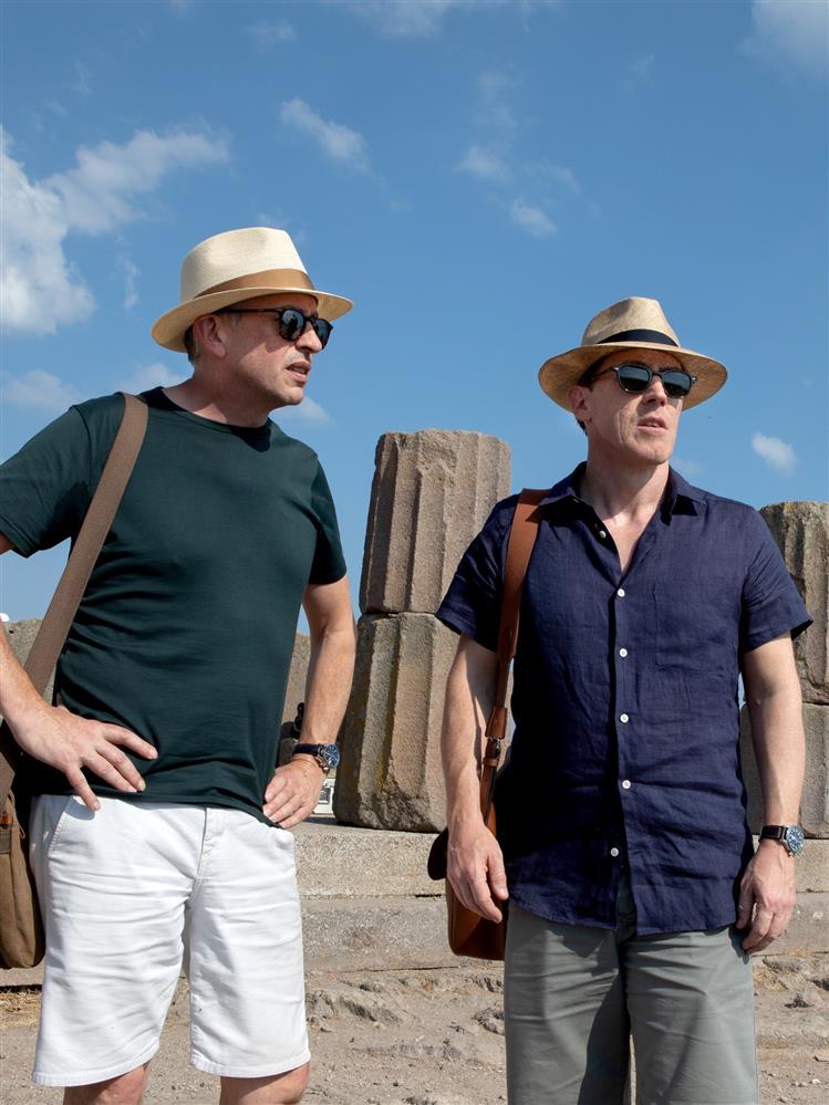 Kümme aastat tagasi jõudis tele- ja kinoekraanile ühtaegu sarja ja filmina Michael Winterbottomi „Reis“.1 Selle mõte oli lihtne: briti koomikud ja näitlejad Rob Brydon ning Steve Coogan reisivad Inglise ajalehele Observer loo kirjutamise ettekäändel mööda Põhja-Inglismaad, et külastada erinevaid restorane, pakkudes kõrvale omavahelist loba ja mõneti vastuolulist läbisaamist. Nad mängisid põhimõtteliselt iseenda väljamõeldud versiooni otsekui kõrvalloos Winterbottomi „Tristram Shandyle“:2 loo keskmes on nende sõprus ja rivaliteet, lisaks meeste eraelu ja isiklike neurooside käsitlemine. See on dokumentaalfilmi taoline lähenemine, kus kahe peategelase omavaheline sobivus ja narratiivi metatasandilisus aitasid köita vaataja tähelepanu ning viisid kolme järjefilmini ehk reisidele Itaaliasse, Hispaaniasse3 ja nüüd Kreekasse. Vaadates Cooganit ja Brydonit Odüsseuse jälgedes kulgemas (ehkki Kreeka mütoloogilised kangelased ei teinud iga päev peatust, et einestada uskumatult kallites restoranides), tekib aga tunne, et sarja väärtus on langustrendis.