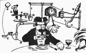 Rida-realt hakkab end ilmutama kummaline objektiteater. Kolks ja kolks muudkui kukuvad metallesemed ja kõlksuvad abstraktsed kujundid. Pildid vahelduvad kähku nagu sürrealistlikus luules. Tervikpilt on aga visa tekkima, sest näib, et iga järgmine rida tühistab mingil moel eelmise. Nii jäigi teos esiotsa kõlksuma nagu Rube Goldbergi doominoefektil töötav masin, kus üks ese annab impulsi järgmisele, kuni pikk jada jõuab lõpuks välja kas mitte kuhugi või triviaalsuseni.