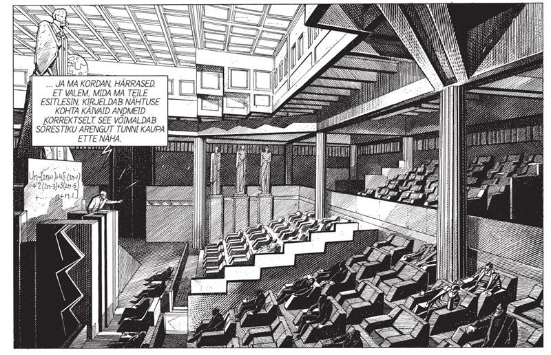 Arhitektuurikoomiksi näitusel hargnevad hallutsinatoorse jumega lood, mis pakendavad ulmedraama vormi filosoofilisi mõtisklusi urbanistikast ja inimloomusest.