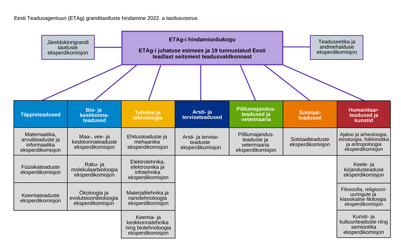 12 Eesti Teadusagentuuri hindamisnõukogu eksperdikomisjonid 2022. a grantide taotlusvoorus