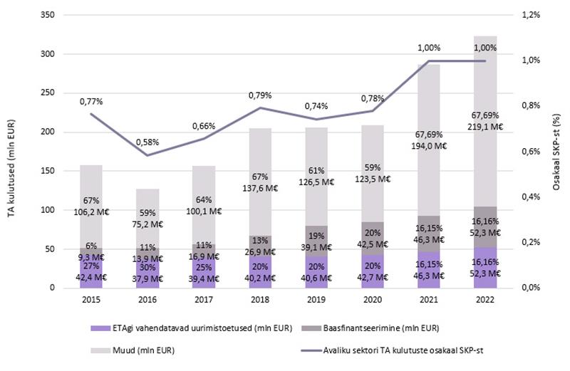 7 Vt ka: Eesti Teadusagentuur, Teadus- ja arendustegevuse rahastamine 2022. a riigieelarve eelnõus ja riigi eelarvestrateegias 2022-2025, oktoober 2021.