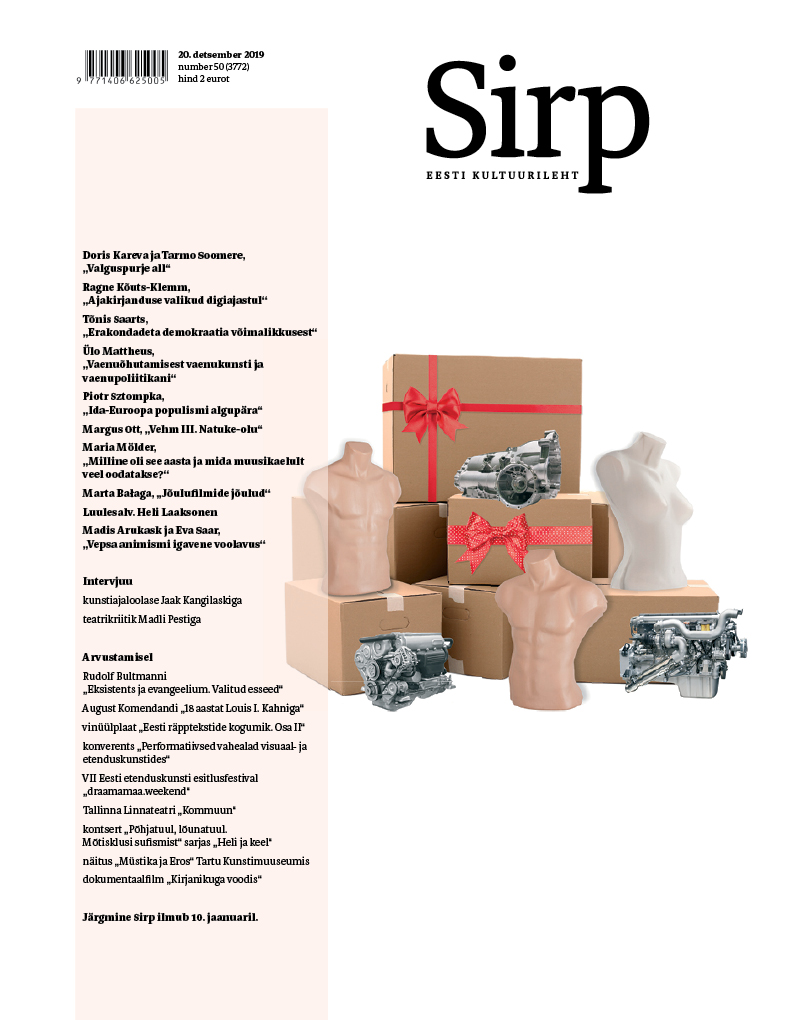 2019. >aastal tehtud teatrile tagasi vaadates hakkab silma teatritegijate soovimatus suhestuda oma lavastuste kaudu ühiskonnaga. „Jätkuvalt huvitab lavastajaid ennekõike mõne juba varem kirja pandud teose lavale toomine või siis eelistatakse keskenduda oma peas keerlevatele loomingulistele impulssidele – laiema ühiskondliku kaaluga materjale kohtab harva,“ nendib teatriteadlane ja -kriitik Madli Pesti.
