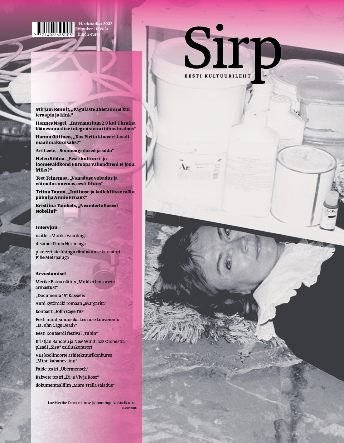 Merike Estna „Muld ei hoia meie armastust“ Kai keskuses kuni 27. XI, kuraator Karin Laansoo, kujundaja Merike Estna ja graafiline disainer Martina Gofman.