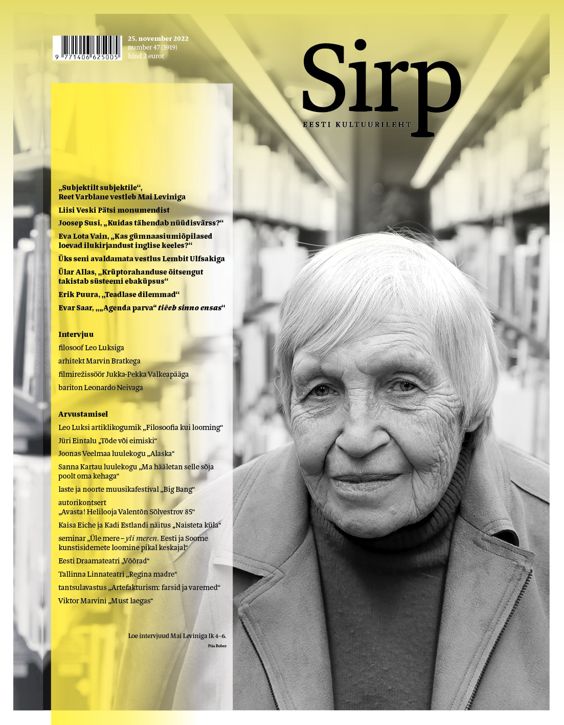 Kunstiteadlane Mai Levin (1942) on truu inimene: tema koduelu on kulgenud Nõmmel, tööelu 1961. aastast pensionile jäämiseni Eesti kunstimuuseumis, teaduri, graafikaosakonna juhataja, teadusdirektori, peaspetsialistina. Ta on läbinisti pühendunud eesti kunstile ‒ suurtele klassikutele Eduard Wiiraltile ja Kristjan Rauale, aga on uurinud ka suurest kunstiajaloost välja jäänud teemasid ja autoreid. Levin pälvis tänavu Kristjan Raua kunstipreemia Kristjan Raua monograafia eest. See on tal teine Kristjan Raua preemia: esimese pälvis 1999. aastal Eduard Wiiralti monograafia eest. 2007. aastal autasustati teda riigi kultuuripreemiaga näituste „Ühest sajandist teise. Kristjan ja Paul Raud“ ja „Vene valitsejad. Valitsejaportreed Eesti kunstikogudest“ ning näitusekataloogide eest.