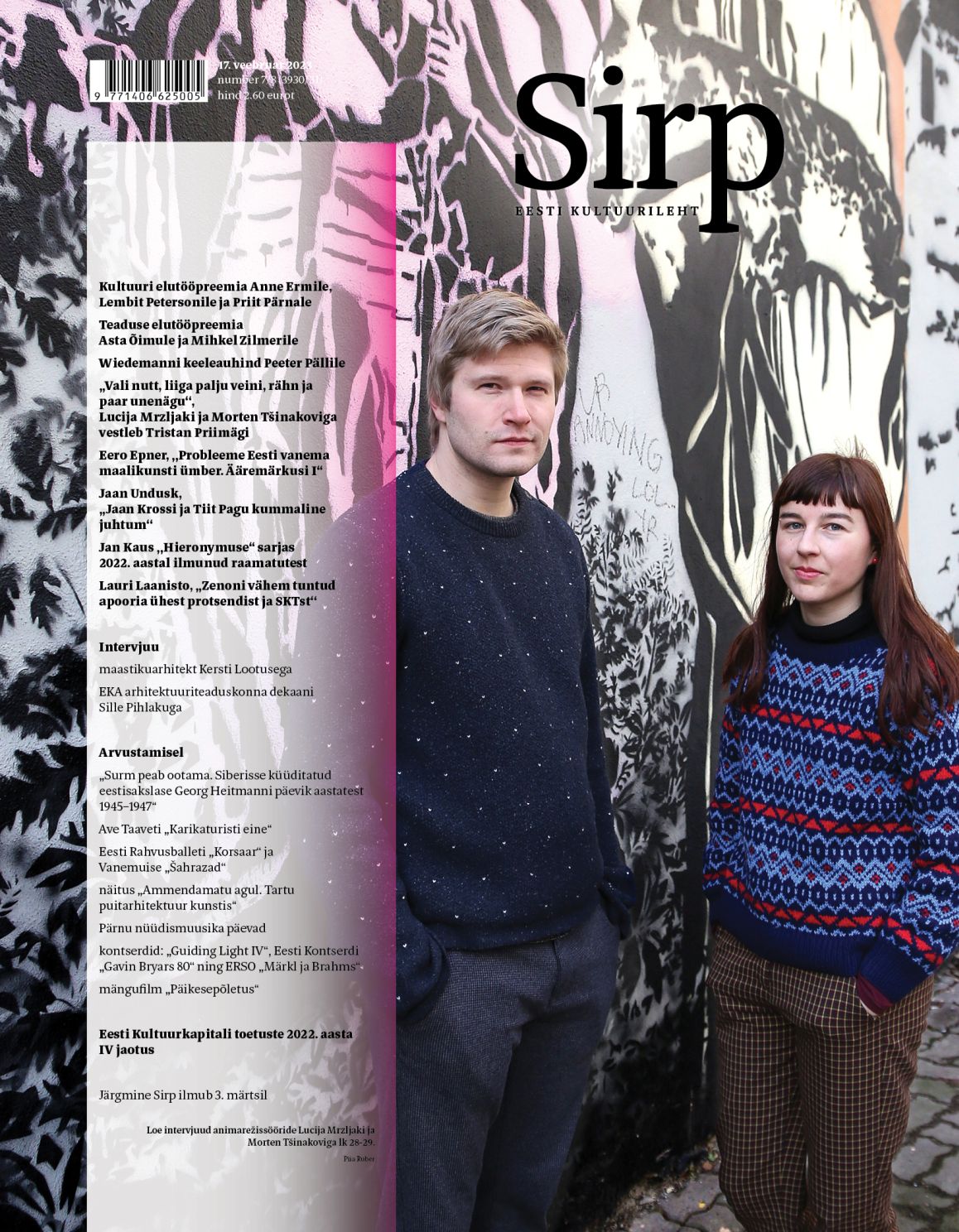 Pärast tagasihoidlikku mullust aastakäiku on Eesti film tänavu alustanud mitme hea uudisega. Kui juba dokfilmi „Savusanna sõsarad“ „Sundance’i“ rahvusvahelisse dokumentaalfilmide võistlusprogrammi valituks osutumine oli meeldiv üllatus, siis veelgi enam tegi rõõmu nende sealne pretsedenditu auhinnavõit jaanuari lõpupäevil. Vaevalt jõudsime kalendris uue kuu ette keerata, kui selgus, et Lucija Mrzljaki ja Morten Tšinakovi värske lühianimatsioon „Eeva“ii on valitud võistlema Berliini filmifestivali lühifilmide võistlusprogrammi, kahekümne lühifilmi hulka. On igati sobiv aeg küsida neilt nii „Eeva“ kui ka nende juba üle mitme filmi ulatuva loomingulise koostöö kohta.