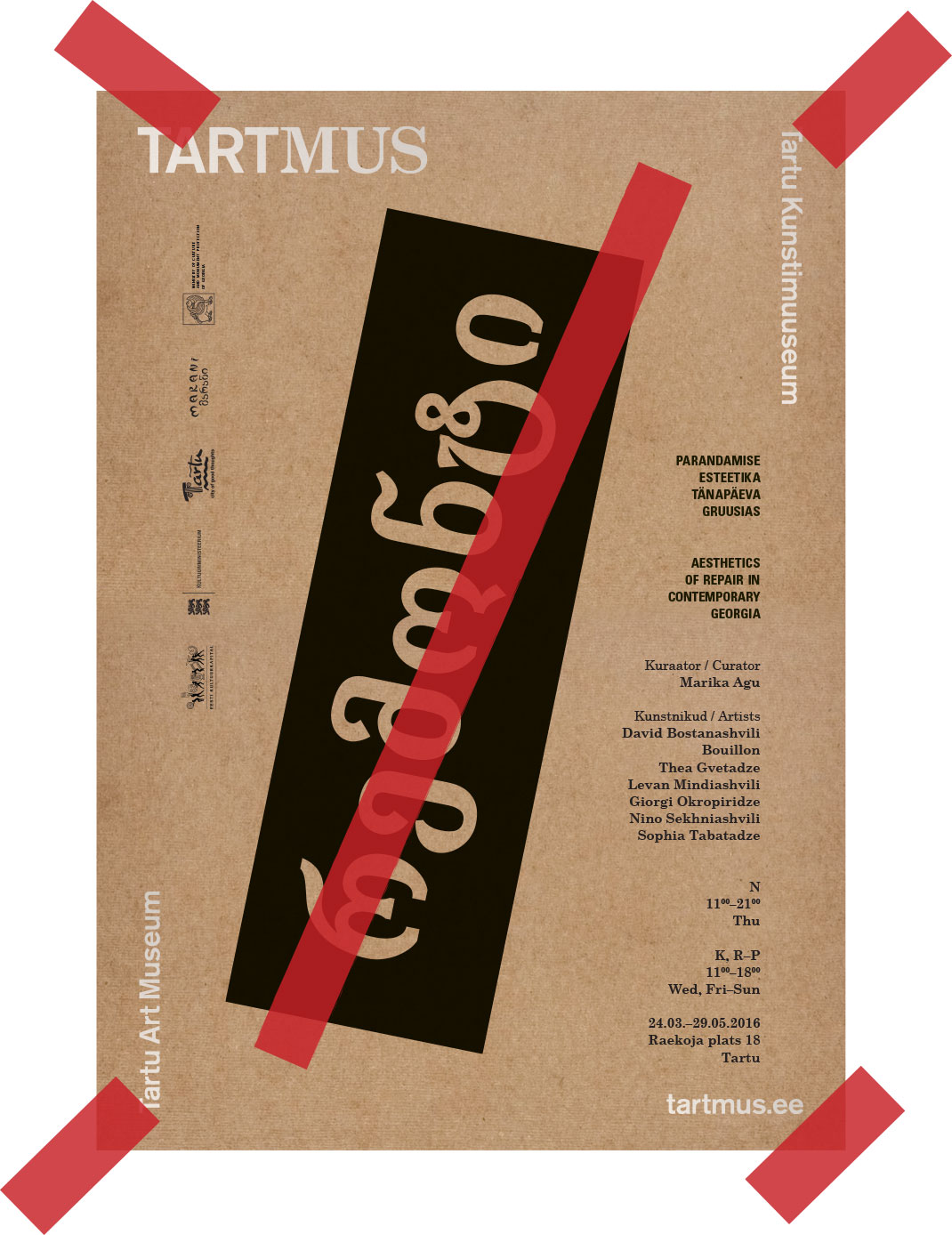 24.03. kl 18.00 avatakse Marika Agu kureeritud näitus „Parandamise esteetika tänapäeva Gruusias“, mis toob esile lõhkumise ja hoolduse isiklikke ja kollektiivseid tähendusi.
