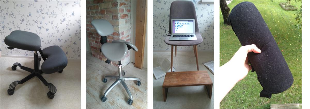 Alustame põhialustest. Tõlkija küürutab enamasti päevad otsa ebatervislikult laua taga ja seab suurde ohtu oma selja. Kuid kus häda kõige suurem, seal rohi kõige lähem: „Tõusen tavaliselt neljast või viiest, tööpäev kestab (loomulikult väikeste pausidega) pärastlõunal kolme-neljani. Seejärel teen talutöid või trenni: käin jooksmas, hüppan teivast ja heidan vasarat,“ ütleb legendaarne poola teoste eestindaja Hendrik Lindepuu.4 „Keset tööpäeva teen vahetunde, mille ajal panen lemmiklaulude kassette mängima ja teen nende saatel võimlemisharjutusi. Eriti meeldib mulle eesti kantri,“ kirjeldab oma harjumusi kultuurkapitali mõttetõlkeauhinna 2021. aasta nominent Simo Runnel.5 Ja muidugimõista kuuluvad tihti tõlkija kambri sisustusse põlvetool, sadultool, jaapanlaste põlvepink, mida saab veebipoest osta, aga mille võib valmistada ka laps koolis loovtööprojekti raames, ja seljarull.
