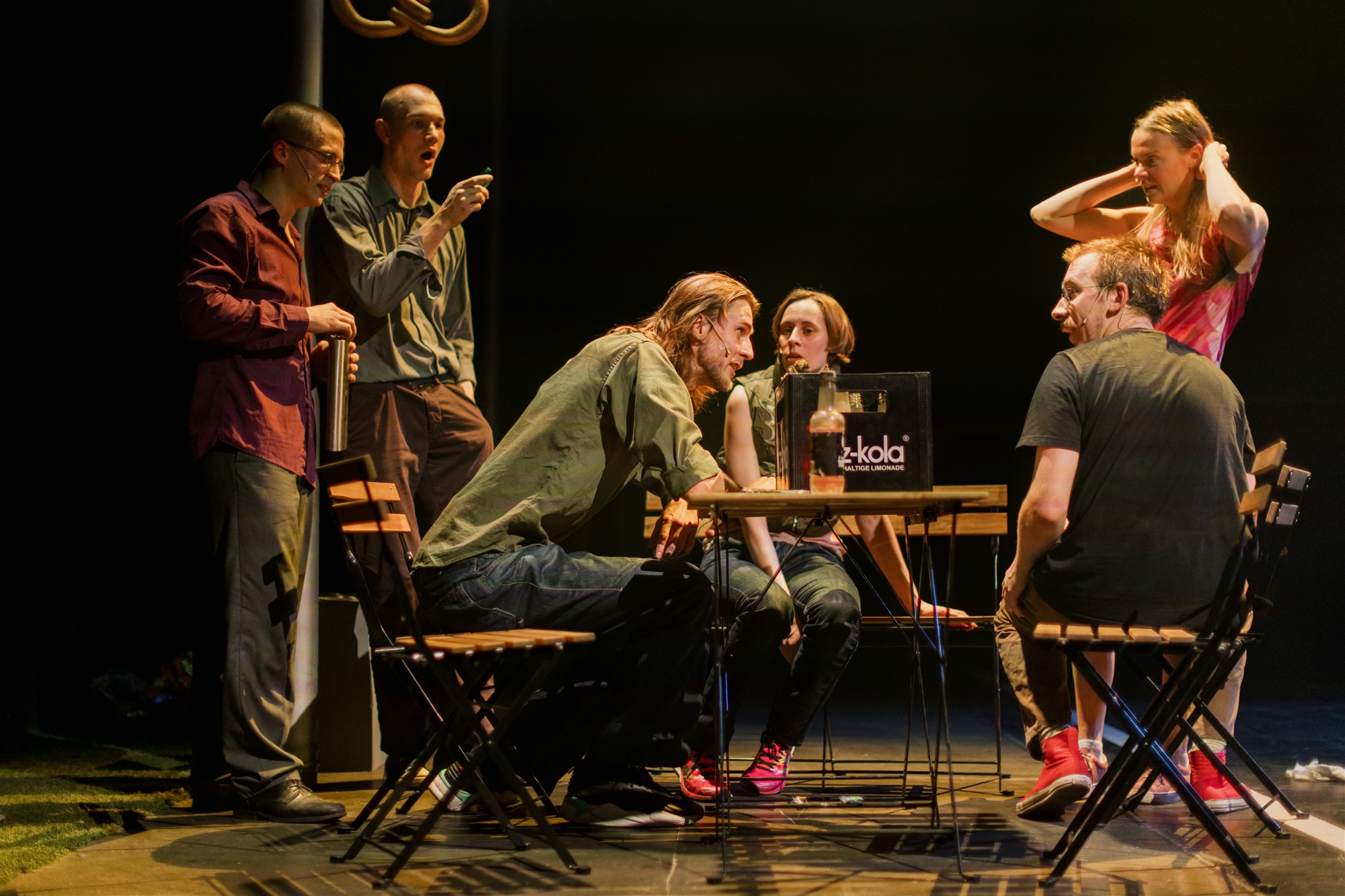 Paratamatult tekib küsimus, kes ikkagi on lavastuse subjekt? Kelle nimel räägitakse? Von Krahli teatrile omane isiklik hoiak on selle lavastuse tugevus ja ühtlasi nõrkus. Tahes-tahtmata jääb mulje, et see inimene elab sealsamas Telliskivi loomelinnaku lähedal, kui tema suurimad mured on tänavaremont ja see, kui palju maksab tass kohvi, nii et Rait Avestik on osutanud juba sellele lavastusele kui munitsipaalpungile2. Seda kujutluspilti toetab ka tihedalt viiteid täis kavaleht, mis on temaatiliselt avaram kui lavastus ning kus on selgitatud aktuaalseid poliitilisi, kõrg- ja argikultuuri märksõnu kuni „kastiratta“ ja „Bolti tõuksini“. Eestis ei piirne siiski sotsiaalsed lõhed ja frustratsioon linnakeskkonna probleemidega ning mitmel protestigrupil on hoopis teised ajendid, seega ei ole lavastuse sotsiaalne üldistusjõud kuigi suur. Seda kaalukam võinuks olla protesti eksistentsiaalne poolus.