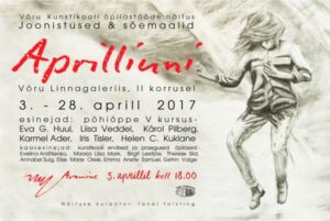 “Aprilliuni” on Võru Kunstikooli õpilastööde näitus, mis suunab külastajaid ühest reaalsusest järgmisesse ärkama, pikendades nõnda ärkamise momenti. Aprill on veel hall ja seda on ka enamasti ühetoonilised ent peenemängulised joonistused. Terves kehas on palju unenägusid.