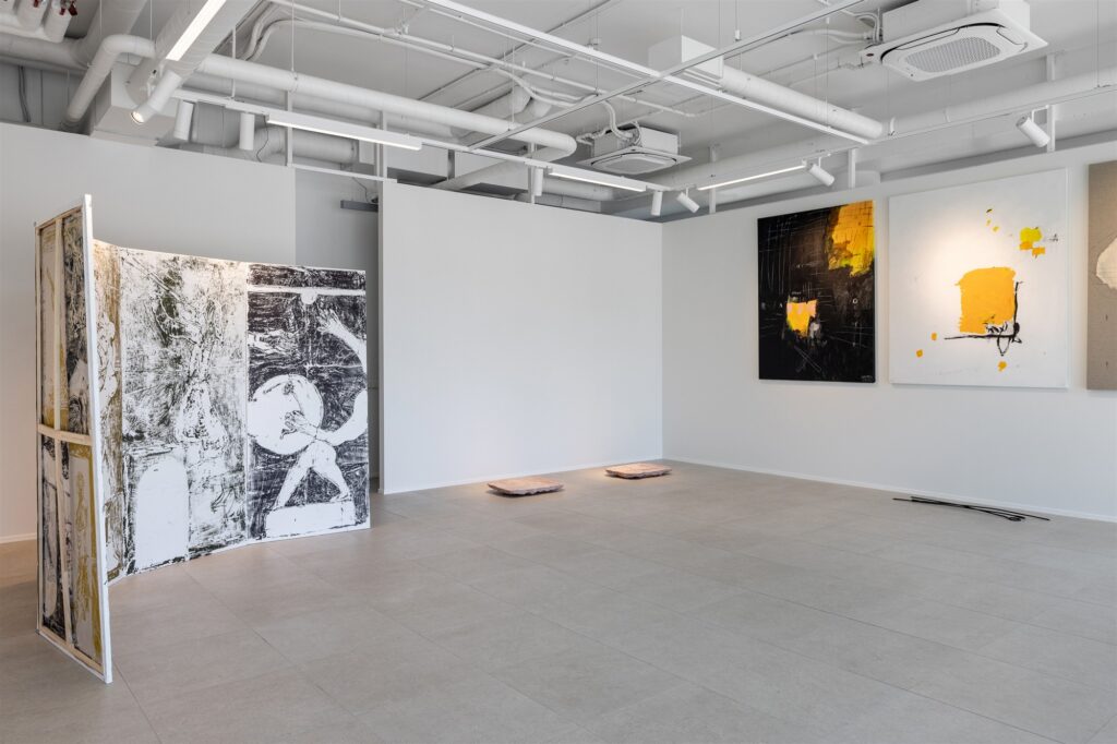 Eklektika võib esmalt mõjuda eemaletõukavalt või segaselt, ent pikapeale hakkab paeluma just seetõttu, et kõik tõrgub ega anna end kätte. Kümme teost on kuhjatud ühte ruumi, kuid nende kontrastne kokkukuuluvus jääb lõpuks pigem ikkagi aimatavaks. Tööde paigutus loob galeriiruumi keskele omamoodi raskusjõupunkti, enam-vähem sinna kohta, kus ma ise asusin. Sellest punktist, mustast august, võibki väljapoole põrnitseda – näiteks otse Hammeri lõuenditel leiduvate päikeseliselt kollakate värvilaikude poole.