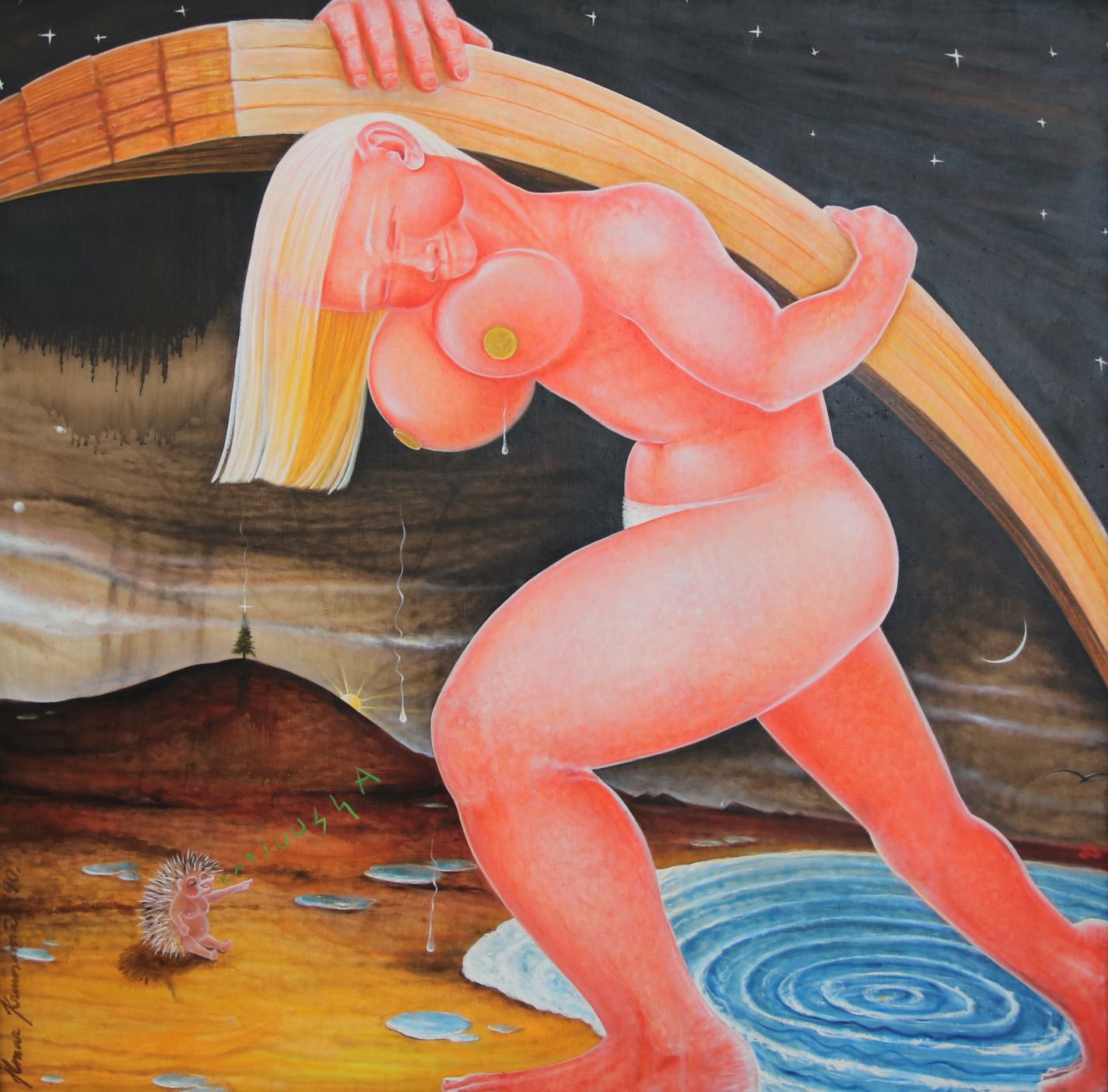 Peeter Alliku monumentaalmaal „Ma nägin seda“, mida täidab lapseootel naiste vägi, ajab esmapilgul naerma. Samas hämmastab jõud, mida omavad naised elukandjana ja eluandjana. See vägi peaks olema naiste käes võimsaks argumendiks võitluses mitte ainult kõrgema palga, vaid ka suurema õiguse eest otsustada oma maa ning rahva saatuse üle.